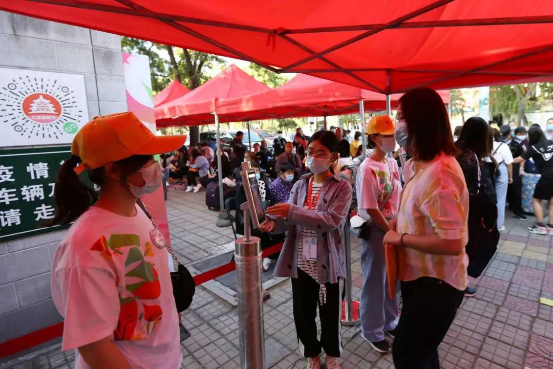 为落实北京市高校秋季开学疫情防控总体要求,本次迎新,校区各部门协同组织,保证疫情防控常态化形势下校园的安全稳定。学生工作部(处)组建迎新志愿者队伍,特别在本科生报到当天在北校区临近地铁站接驳报到新生,新生可凭借录取通知书、健康码、查验核酸检测证明,检测体温后可上车,志愿者协助迎新工作人员做好辅助工作与现场服务工作,引导新生完成各报到流程。校门、宿舍楼设置体温检测区域,严格控制校园各楼宇出入人员信息;新生入校后即实施相对封闭管理,维护校园安全稳定。