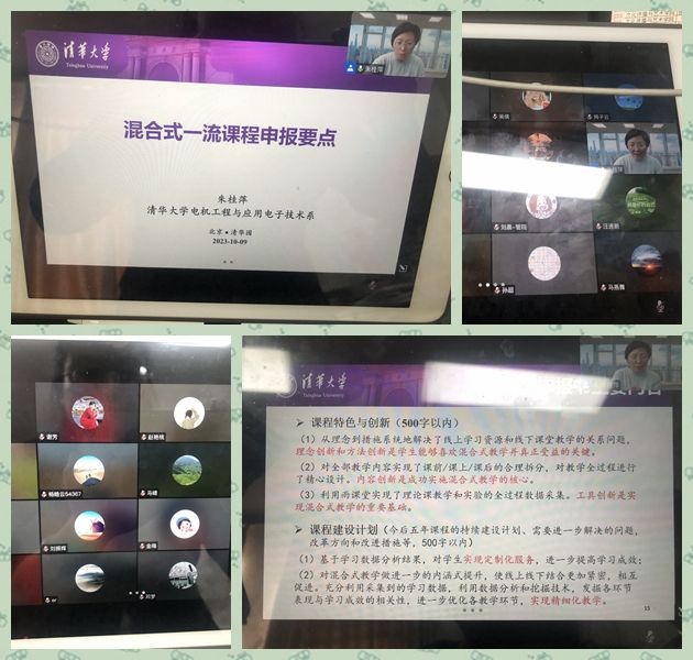 10月9日,中心邀请了第二批国家级“线上线下混合式一流课程”《电路原理》负责人、清华大学电机系朱桂萍教授进行了线上的经验分享和指导。朱老师以“混合式一流课程申报要点”为题,重点讲授和分享了混合式一流课程建设过程和申报要点,详细介绍了混合式一流课程建设和申报书的填写要求、难点和经验。从理念到方法,再到每一个填报环节都进行了详细的剖析,接着给与会老师展示了课程设计样例,以及说课视频的要点和样片。