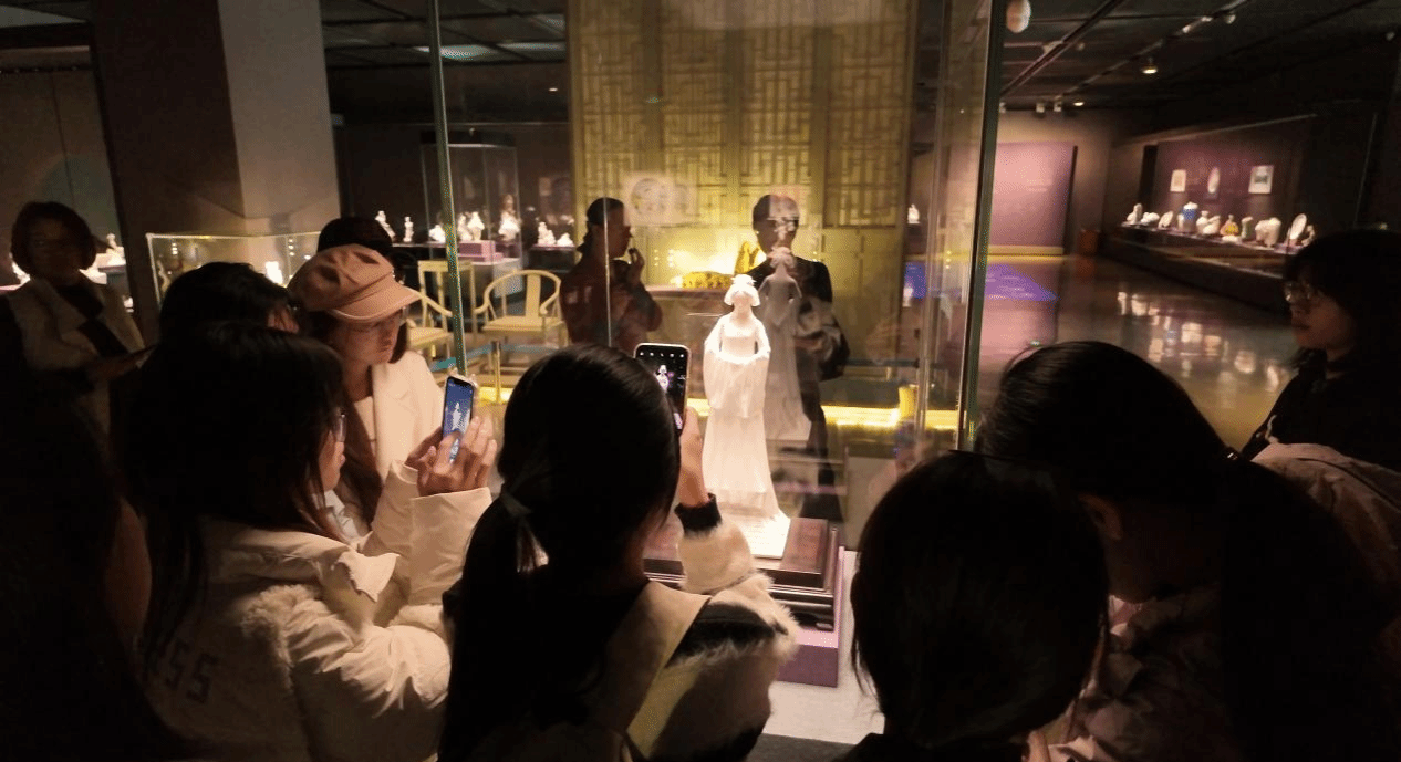 跟随讲解员的脚步,同学们走进主题展厅,一件件精美的展品映入眼帘。白瓷“白如玉、薄如纸、明如镜、声如磬”,带着独有的纯净与典雅,从岁月中走来,在静谧的灯光下,展示着洁白细腻的瓷胎。有的匀净明润,尽显天然本色的风韵;有的点缀五彩,别具艳丽中的明媚。同学们细细聆听瓷器背后的故事,用眼描摹其素雅的身姿,心中满是震撼与动容。