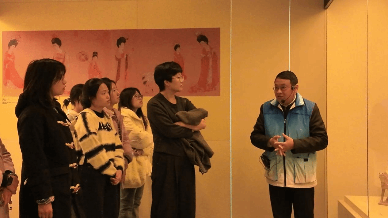 随后参观的古代妇女馆以历史为脉络,展现了中国古代妇女在推动人类文明进步中不可替代的作用和伟大贡献,勾勒出她们在历史长河中的地位变化。讲解员用富有感染力的声音娓娓道来,同学们紧紧环绕,感受“妇”字背后女性的磅礴气概,仰望代表生育与月神的古老图腾“蛙纹”。