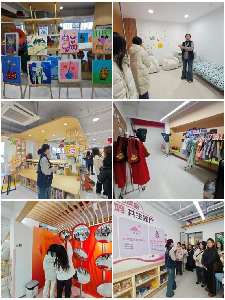同学们走进朝阳儿童成长友好空间:美育作品展示墙的画作藏着孩子对世界的独特感知,“爱心妈妈之家”诠释着爱的传递,配置齐全的母婴室尽显细致关怀,“爱心衣橱”定格孩子们的烂漫瞬间。这些设计既传递了社会对妇女儿童的关爱,也让同学们直观感受女性在公共空间建设中的创造力与温度,启发大家未来将女性的细腻、坚韧与责任感融入社会服务与创新实践。