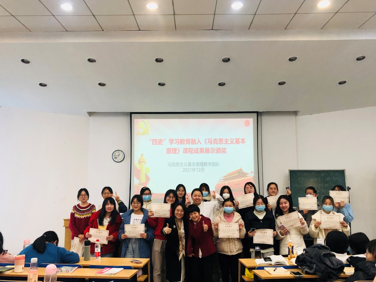 为深入贯彻习近平总书记关于党史、新中国史、改革开放史、社会主义发展史学习的重要讲话和指示精神,把“四史”教育有机融入马克思主义基本原理课教学,推动“原理”课教学改革创新,激发学生爱国报国之志,坚定马克思主义理想信念,思政部马克思主义基本原理教学团队借助课内实践活动,以“悟思想伟力 担时代使命”为主题成功开展了以党史为重点的“四史”教育进课堂成果展示大赛。