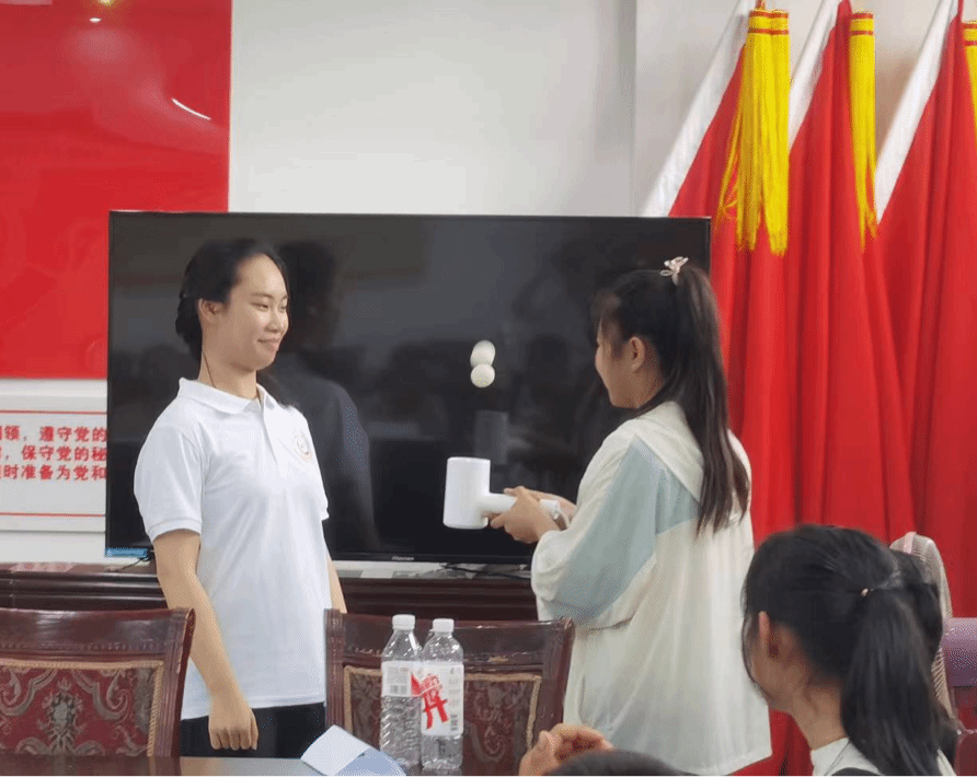 同学们通过“击鼓传花”进行破冰,让孩子们充分展现个人特点,一起学习“天天向上”课桌舞,培养韵律感和集体意识。