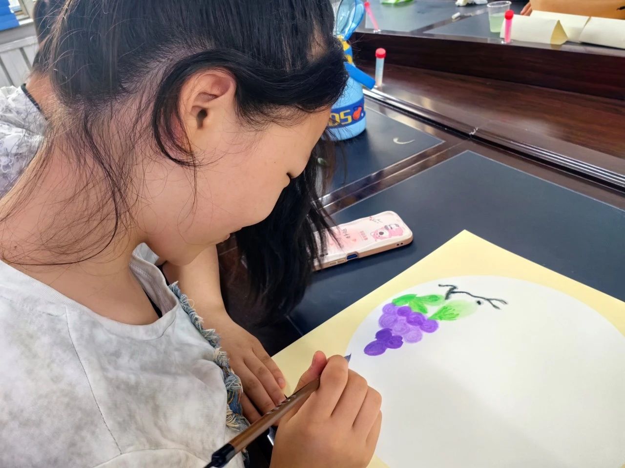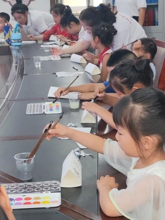 国画课堂上,孩子们通过色彩的绚丽和水墨的奇妙,领略中华传统艺术的魅力,进一步提升审美能力和民族自豪感,同时也增强了他们的团队协作能力和集体意识。