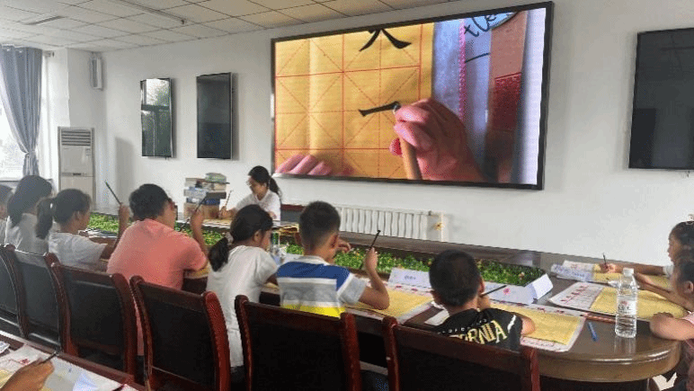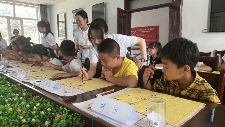 书法课上,同学们耐心地教导孩子们书写“天地人和”,孩子们一笔一画,认真专注,对中华优秀传统文化的魅力有了更深刻地领悟。