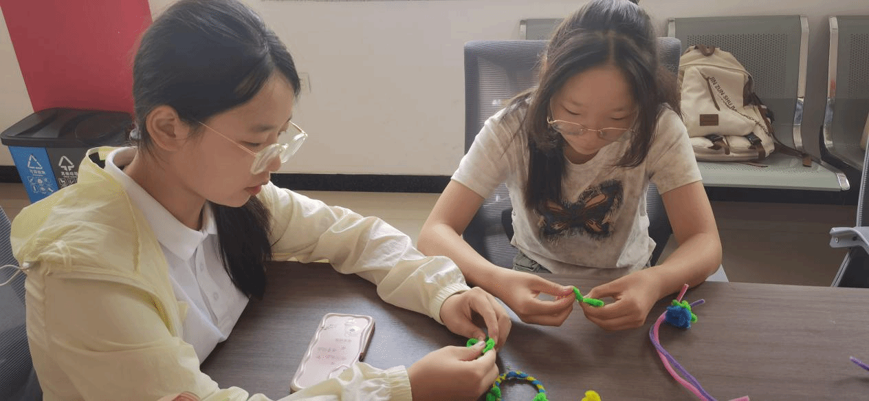 在扭扭棒手工课上,孩子们充分发挥想象力,创作出一件件形态各异、充满童趣的小手工,教室里洋溢着孩子们的欢声笑语。