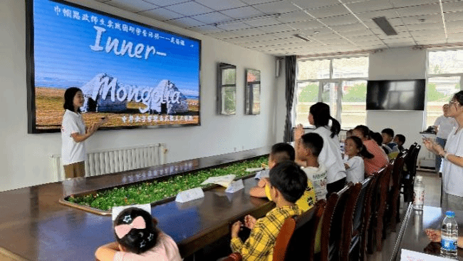 在英语课上,同学们带领孩子们用英语学习内蒙古文化特色。孩子们积极参与,用清脆响亮的英语声,表达着对这片土地浓厚的爱。