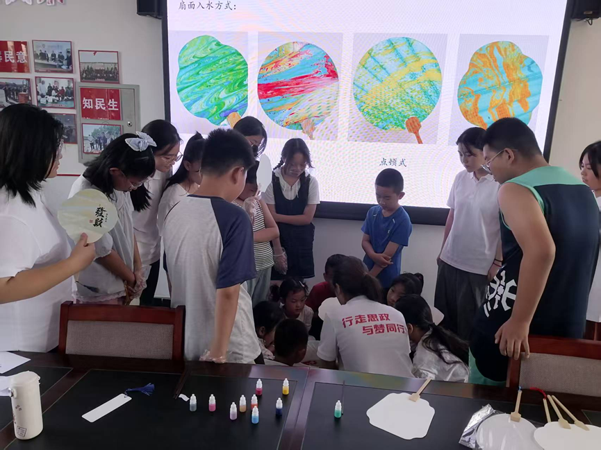 非遗漆扇课上,同学们通过详细介绍漆扇制作的不同手法,指导孩子们亲手制作出一柄柄精美漆扇,不仅让孩子们深入了解了非遗文化的独特魅力,更激发了他们对传统文化的热爱。
