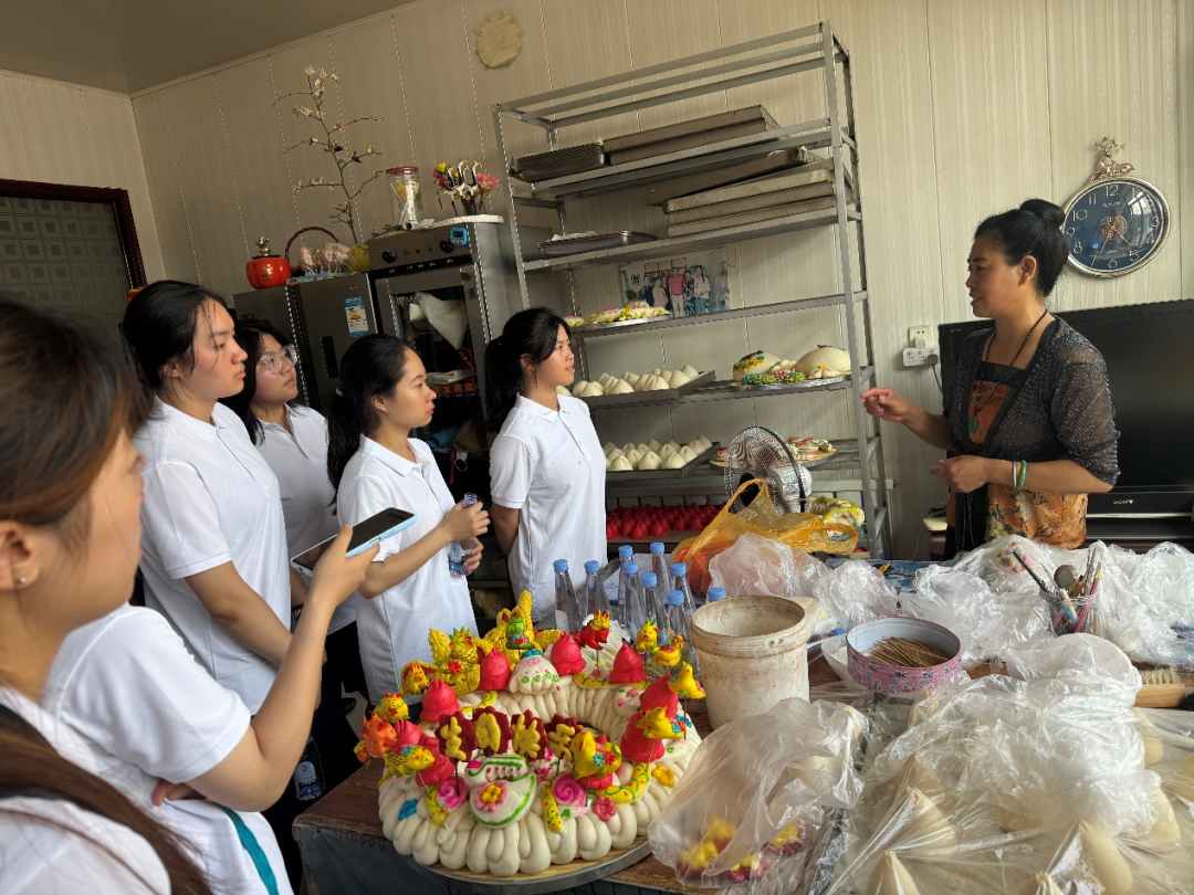 7月14日下午,实践团来到土默特右旗非遗文化中心,参观了包头市级非物质文化遗产脑阁、假人摔跤、阴把缠枪、炕围画等当地非遗文化,了解中华优秀传统文化的独特魅力,并来到面塑非遗传承人李小凤女士家中入户调研,近距离感受了面塑技艺的精湛与圆锁文化的深厚底蕴,深切体悟到中华优秀传统文化的蓬勃生命力及其在当代传承保护的重要意义,激发了学生自觉守护与弘扬中华优秀传统文化的时代责任感。