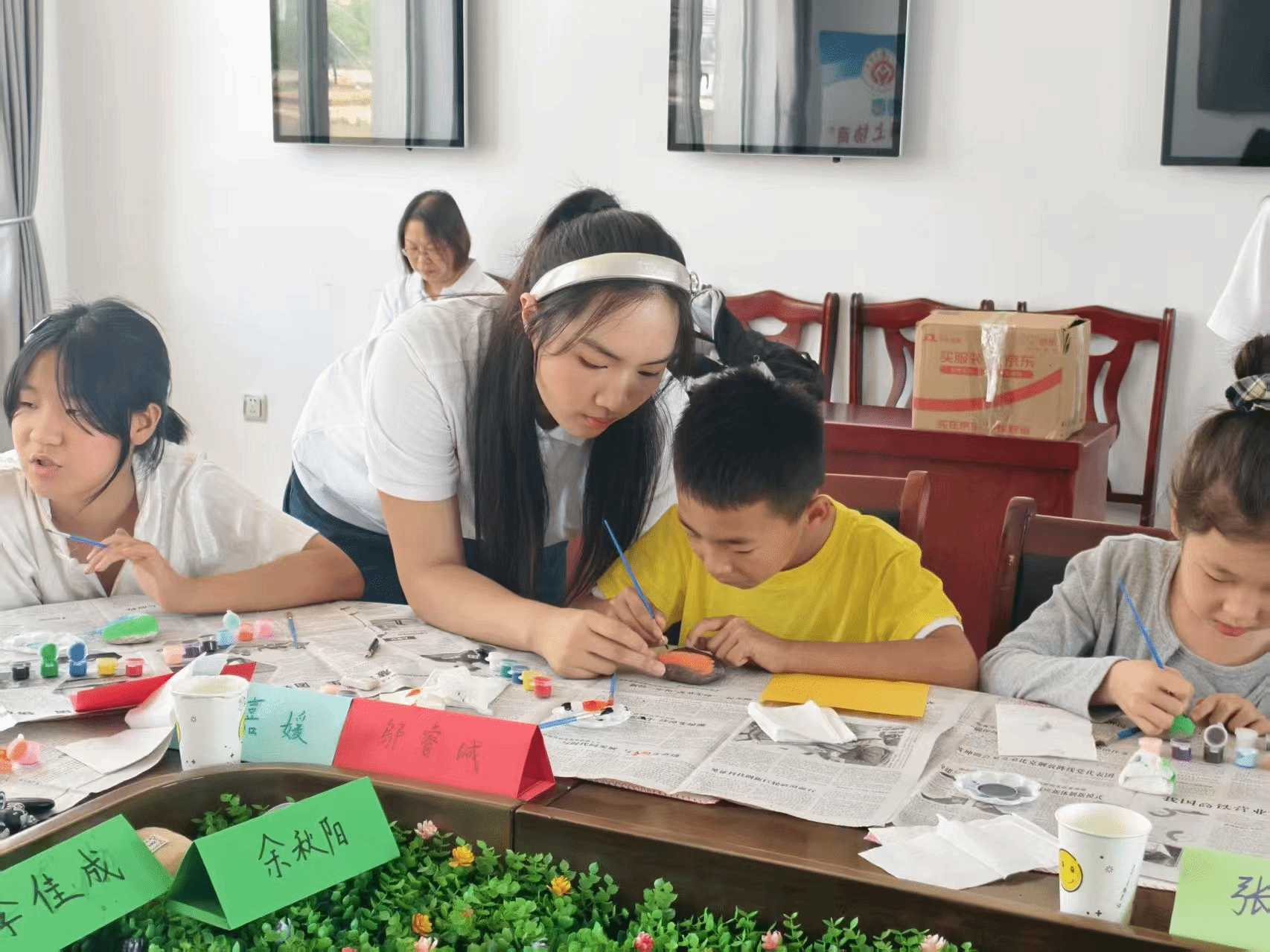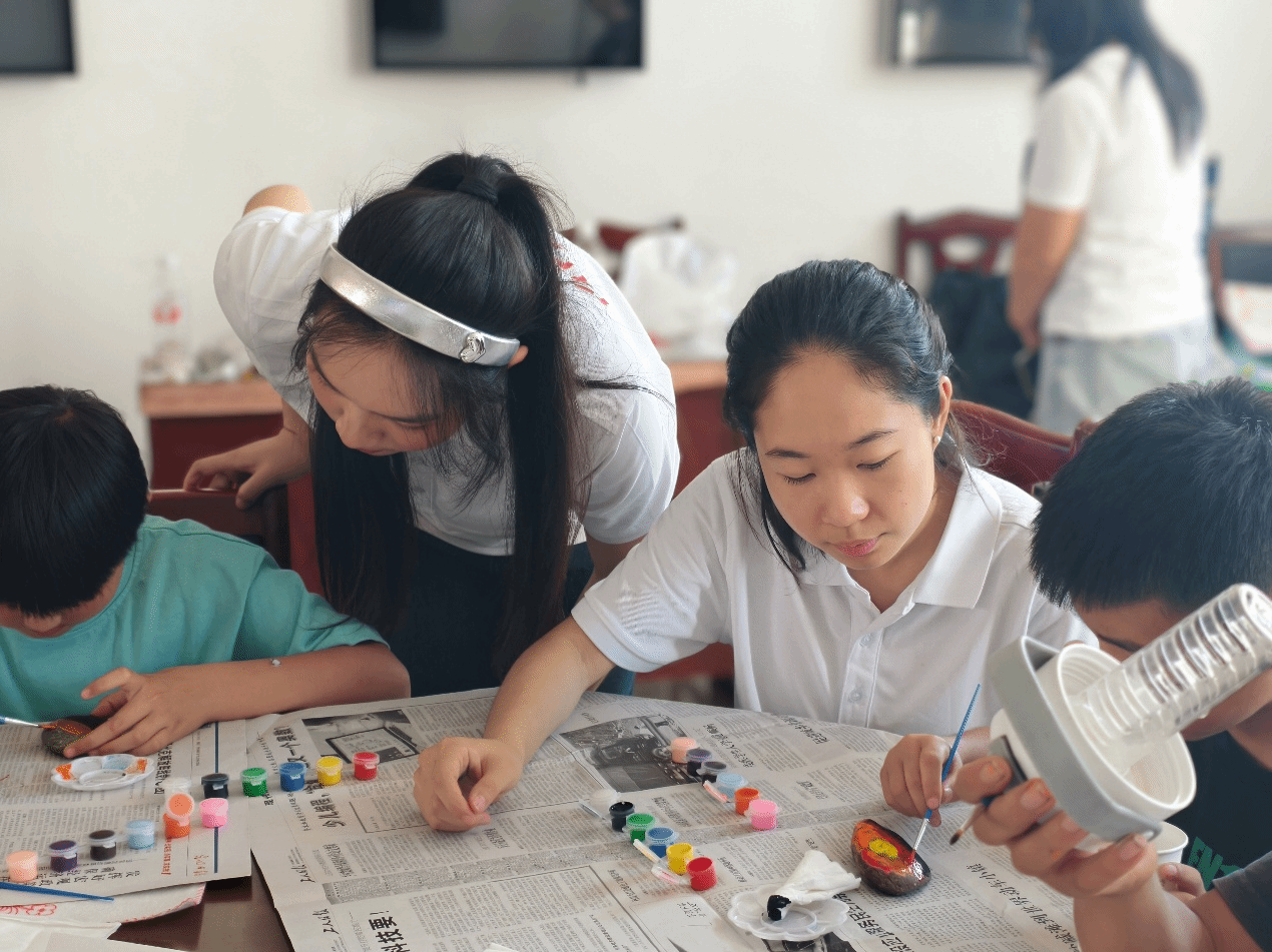 石头画课上,同学们积极践行美育浸润,引导孩子们用画笔为石头穿上花衣服,在动手创作中感受艺术融入自然之美,孩子们学会了从自然中发现美、创造美。