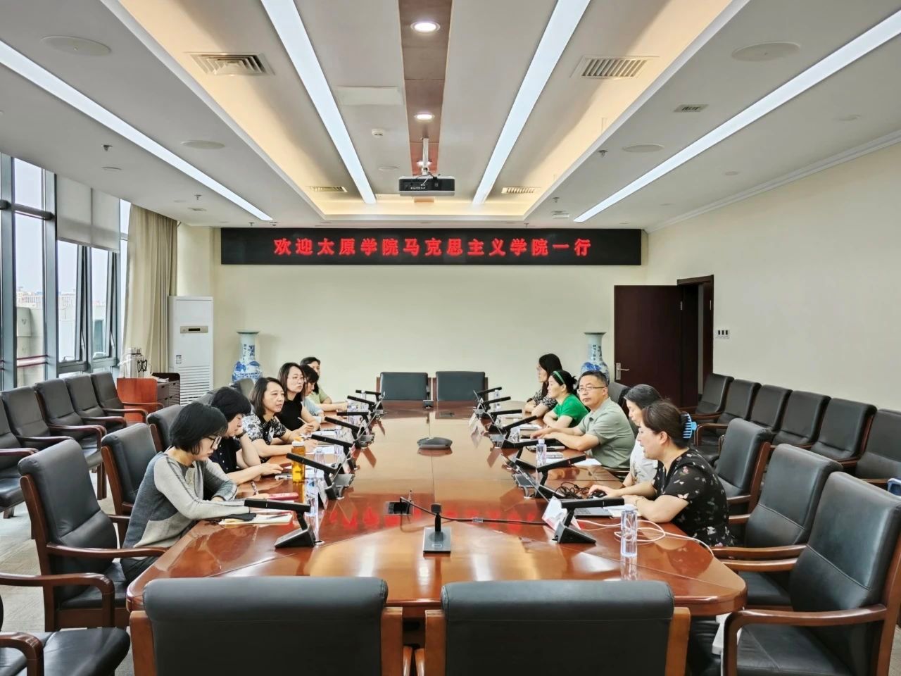 6 月12日上午,太原学院马克思主义学院院长翟婷婷一行来我校马院进行调研交流。马院副院长苗伟东主持座谈会,我校马克思主义学院部分教师参加座谈会。