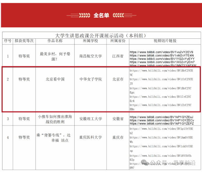 近日,教育部高校思政课教学指导委员会主办的“七十五载薪火传承,千秋伟业奋斗有我”——第八届全国高校大学生讲思政课公开课展示活动正式公布获奖结果。经过严格的评审程序,我校马克思主义学院提交的参赛作品《北京看中国》在来自1339所高校的5007部作品中脱颖而出,荣获“七十五载薪火传承,千秋伟业奋斗有我”——第八届全国高校大学生讲思政课公开课展示活动特等奖。