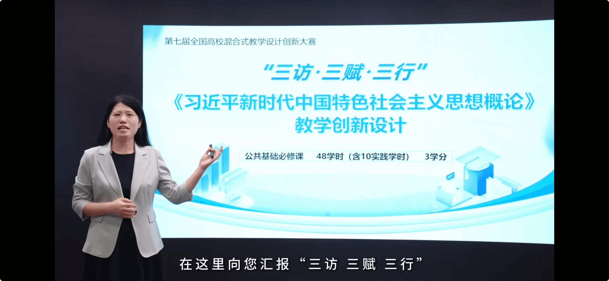 本次参赛课程“习近平新时代中国特色社会主义思想概论”实施“三访·三赋·三行”教学模式,以学生为中心设计教学内容、构建教学场景、引进数字化技术,有效提升了课堂的吸引力和实效性,引导学生深入学习理解党的创新理论,实现了“学而信、信而行”。在校领导的关怀下,在教务部的大力支持下,王欢教授及其团队教师(刘旸、韩冰、任琳、雷娜)认真备赛,精益求精,多次开展线上线下集体备课与研讨交流,精心磨课,不断优化教学设计,将理论知识与现代教育技术相结合,实现了教学创新的新突破。