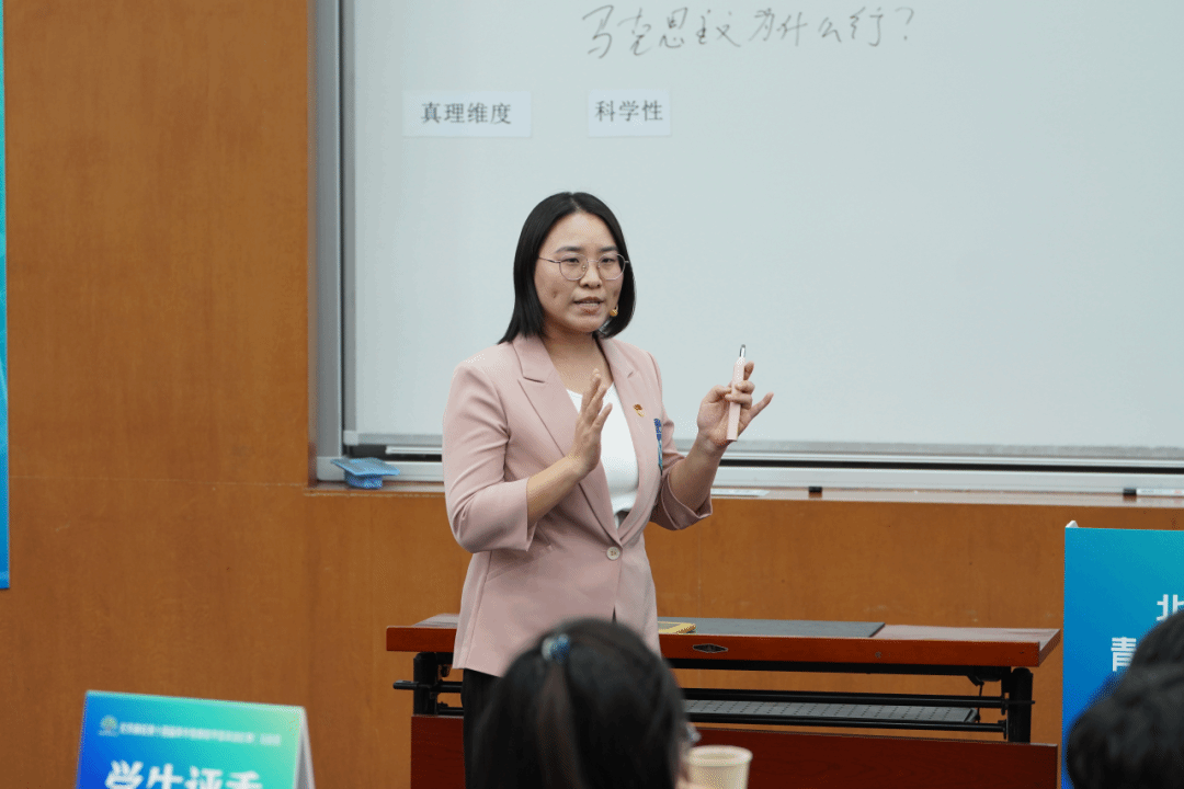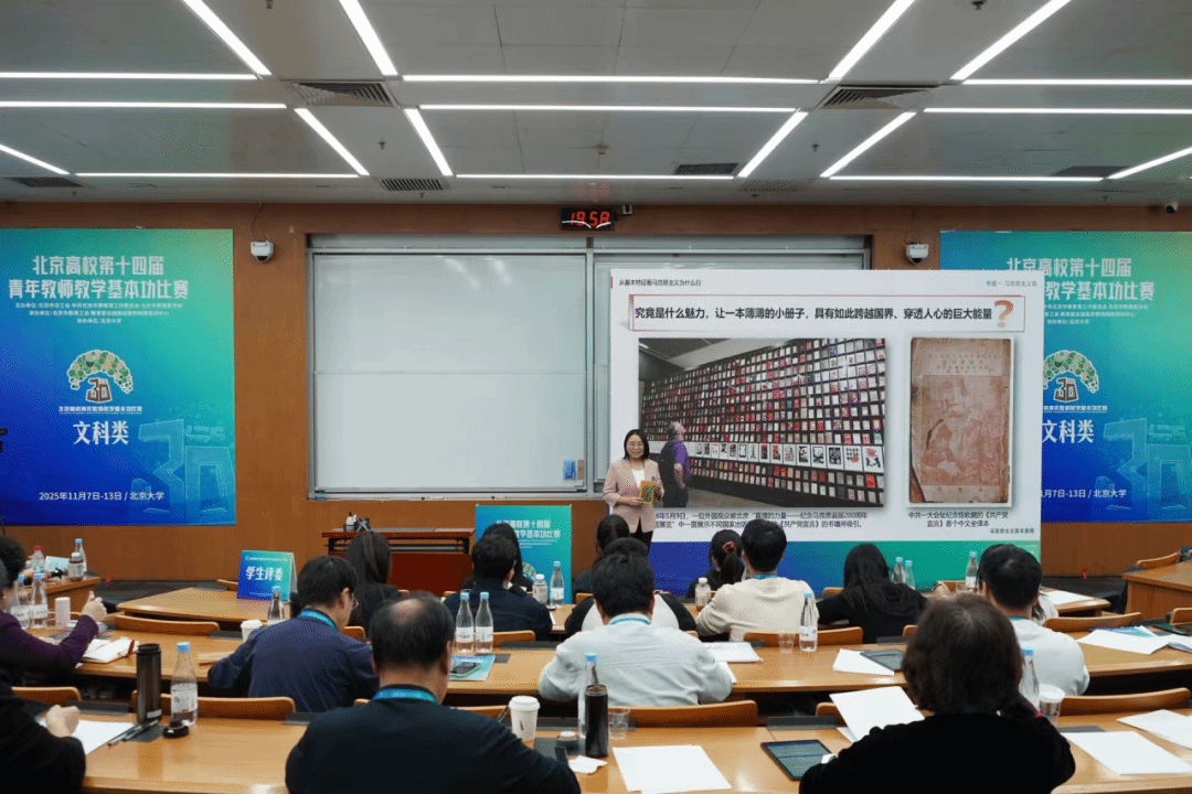 北京市青教赛是检验和提升首都高校青年教师教学能力的重要平台,每两年举办一届,历来竞争激烈、含金量高。本届比赛共设立理科类、工科类、医科类和文科类四个类别,本次文科类的比赛由北京大学承办,共有来自全市69个单位的136名青年教师同台竞技,全面考察教师的教学设计、课堂讲授、教学反思及育人实效。任琳老师紧扣立德树人根本任务,对其主讲课程《马克思主义基本原理》持续打磨提升,精心完成比赛各环节要求。现场展示环节,任琳老师理论阐述深入浅出,案例选择鲜活生动,教态仪表从容自信,充分展现了思政课教师的教学魅力,实现了知识传授、能力培养与价值引领的有机统一,获得了评委专家的高度认可。