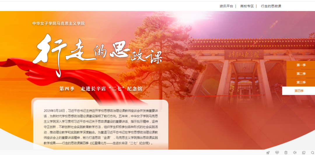 近日,由中华女子学院马克思主义学院推出的“行走的思政课”第四季《红星耀北方——走进长辛店“二七”纪念馆》正式上线北京高校思想政治理论课高精尖创新中心平台和北京市“大思政课”实践教学基地数字地图。这是我校具体贯彻落实习近平总书记对学校思政课建设作出的重要指示,推动思政课改革创新和构建“大思政课”育人格局的具体举措。