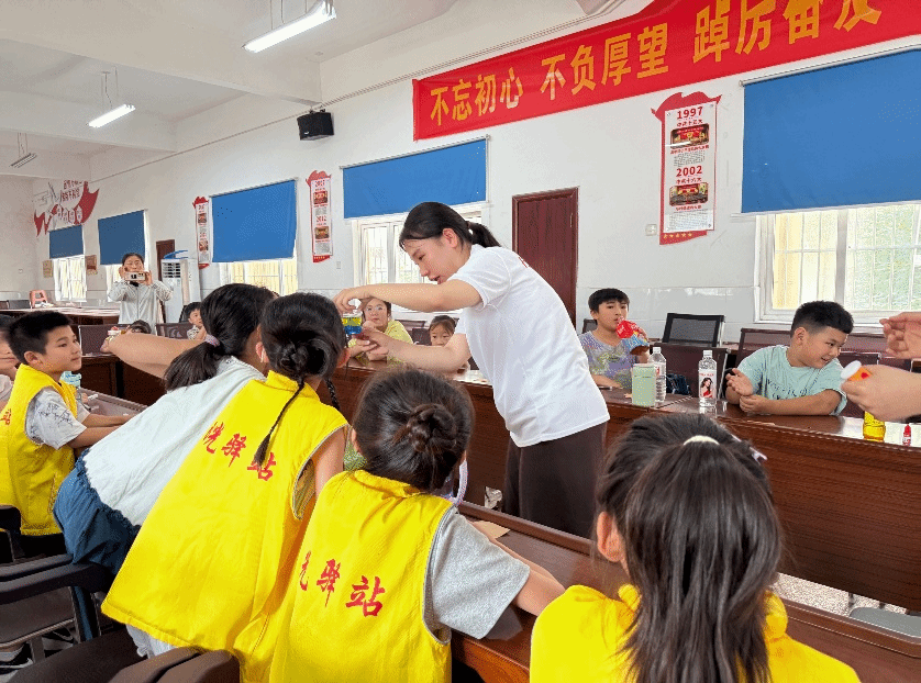 开营仪式结束后,实践团师生来到濠城镇中心小学,分两个班级同步开展研学小课堂。开营第一课,同学们通过制作姓名牌、趣味游戏、分享家乡及成长话题等形式和小朋友们快速拉近距离、增进感情。