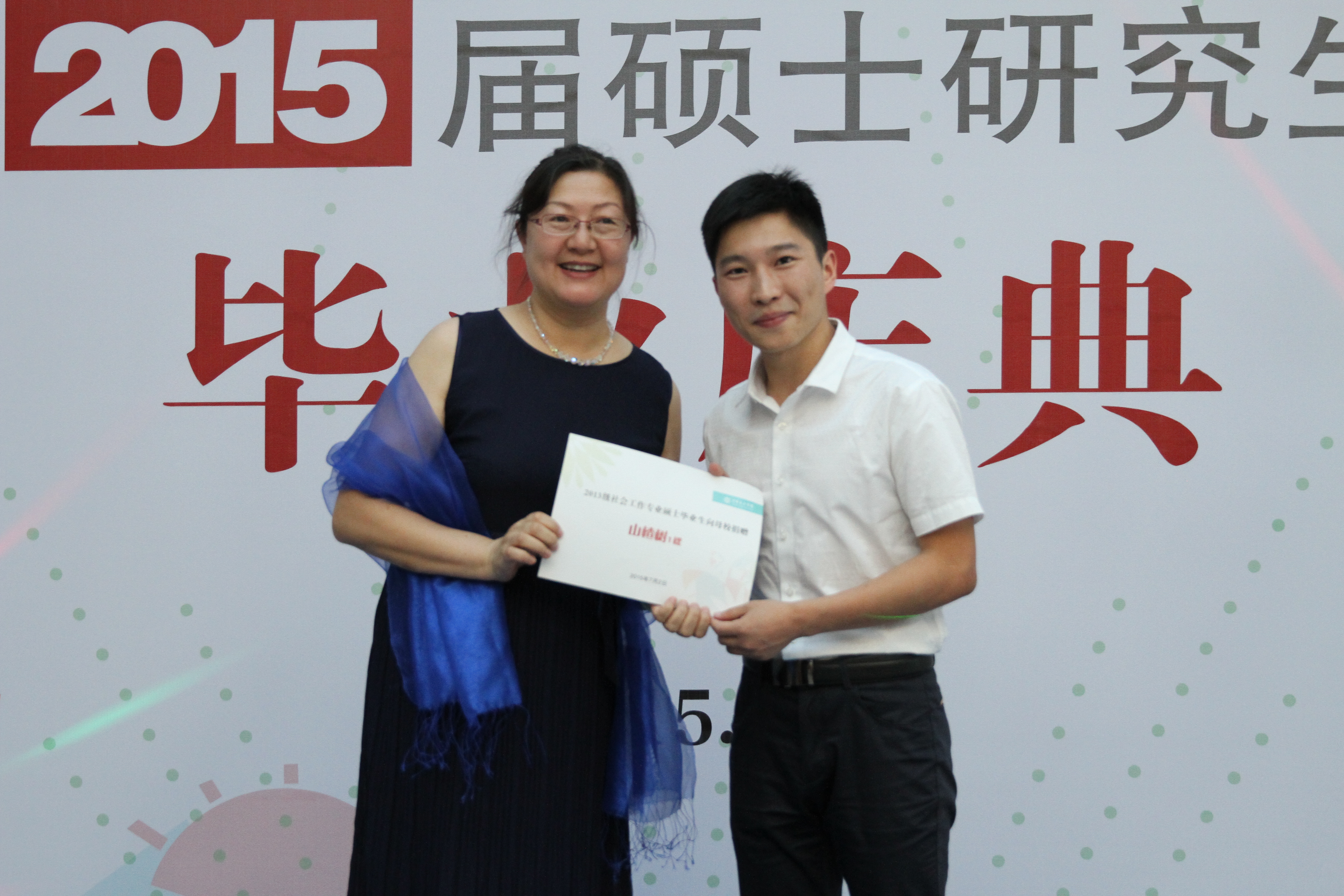 7月2日下午5时,主题为“梦想起航,服务社会”的研究生毕业庆典在教图楼9层隆重举行,学校党委书记李明舜,副院长宋胜菊、刘梦,研究生导师、任课教师、毕业生家长代表、2015届社会工作硕士专业学位研究生毕业生以及我校与东北师范大学联合培养毕业生参加了庆典。庆典由2014级社会工作硕士专业学位研究生石文君、梁晔主持。